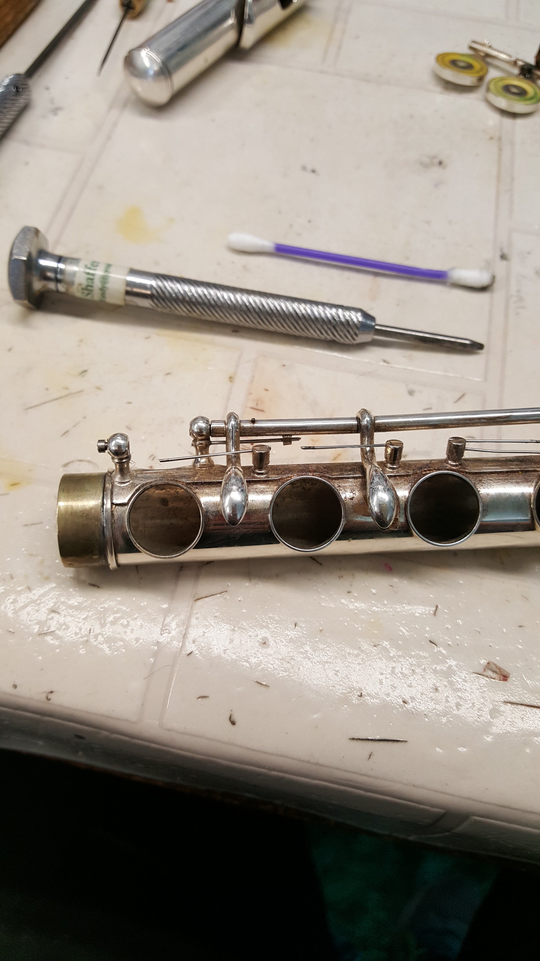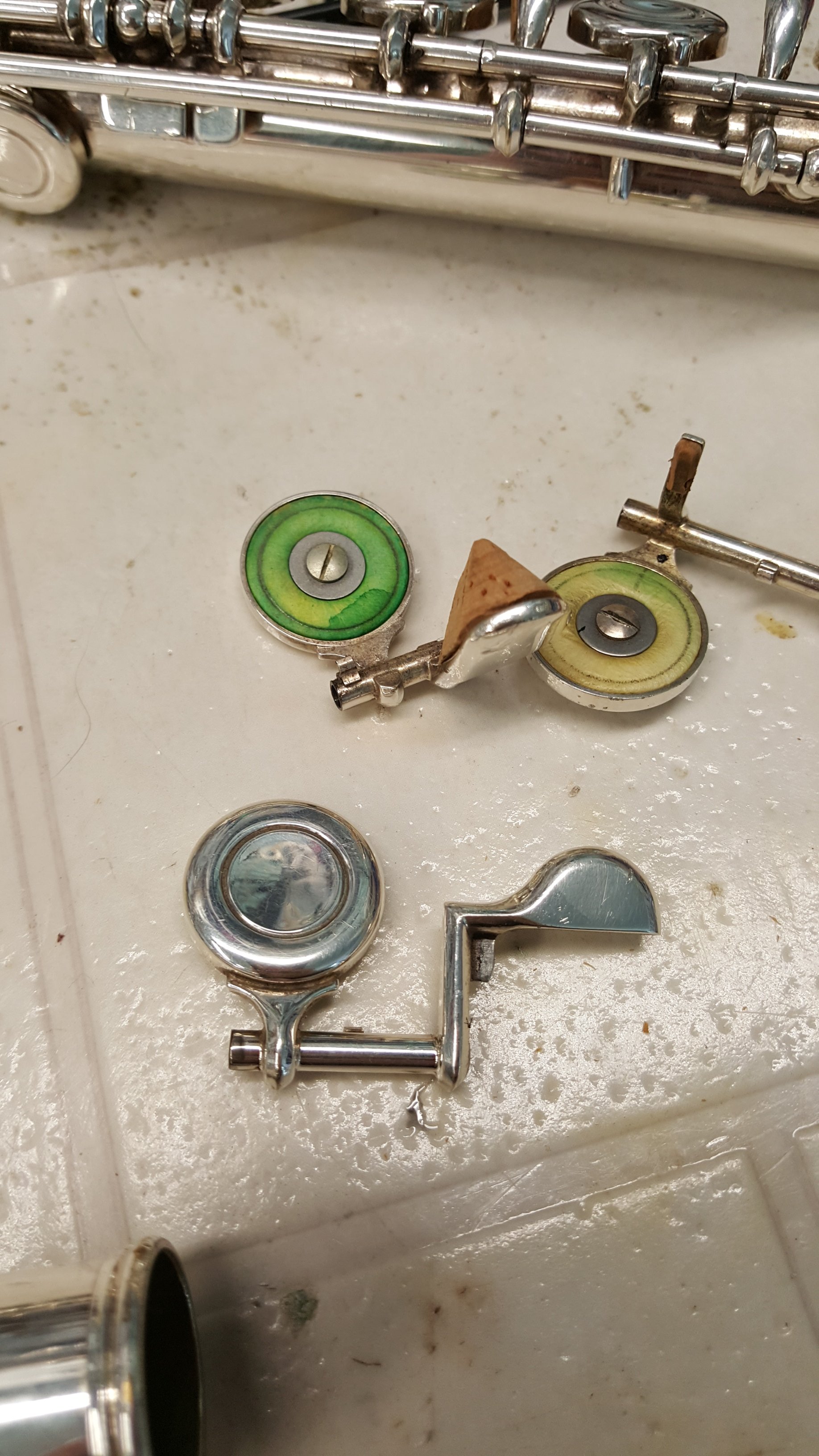 Bent keys and green pads. Got the key mostly straight and the pads still seal…it plays great!