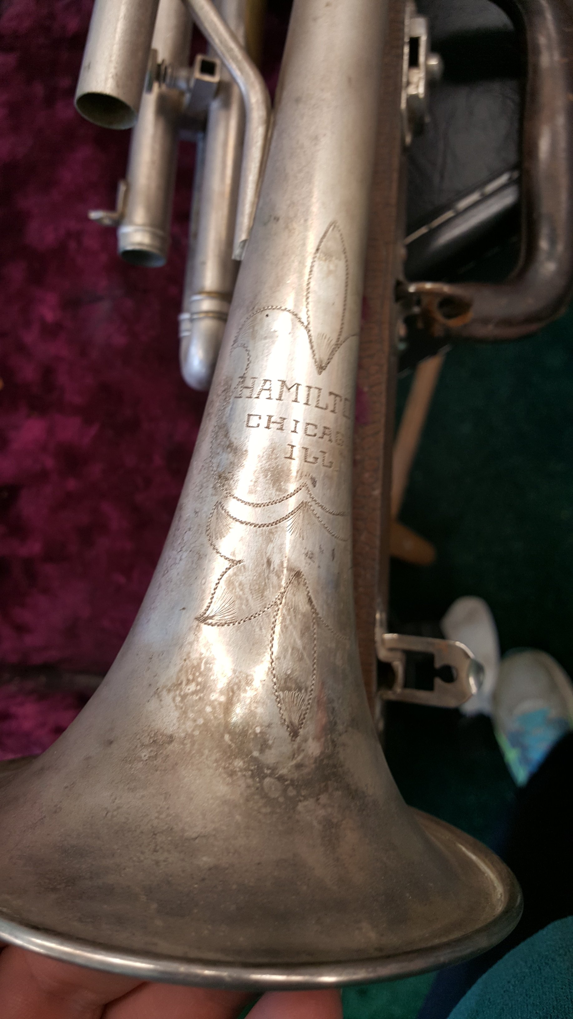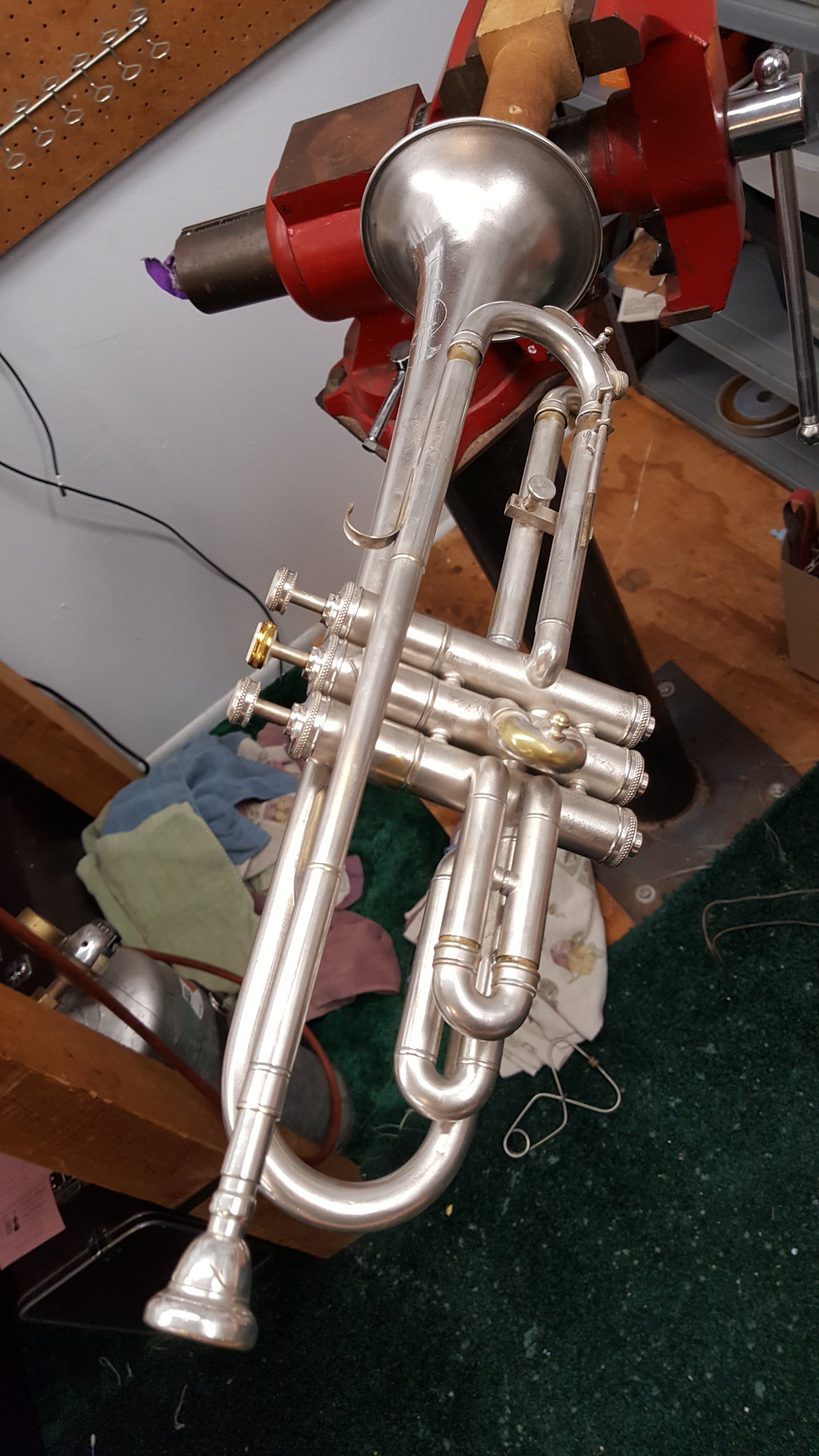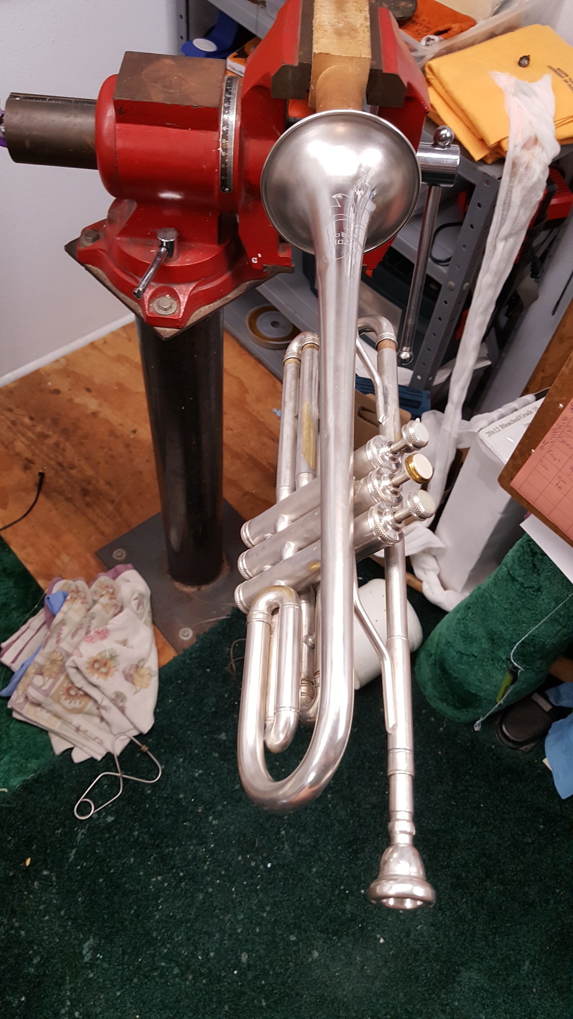 Just because I decided to take on a Saturday emergency. Kid needed his grandpa’s horn working for band on Monday. First time I’ve seen hose clamps to hold a horn together. Rather clever as there was not adhesive to remove like duct tape or super glue which takes my time and their money.