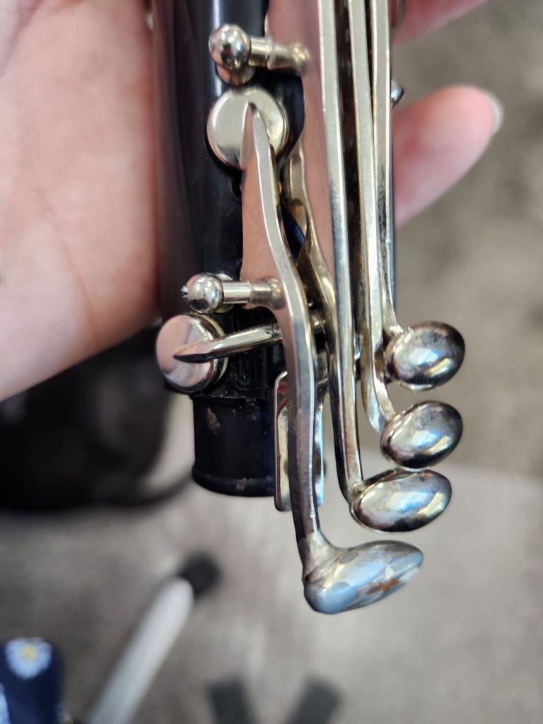 Declaring that came in with an extremely bent side B flat E flat key, but luckily the clunky repair job somebody did previously held up to being straightened out. And needed a new tenant cork, naturally.